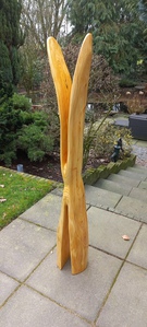 Een simpel boomstammetje veranderd in een gracieus beeld van 140 cm